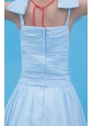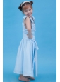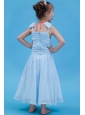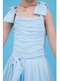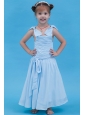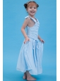 Baby Blue A-line Straps Ankle-length Flower Girl Dress Chiffon Ruch
