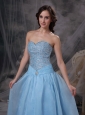 Baby Blue A-line Sweetheart Prom Dress Oraganza Beading