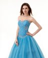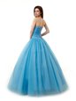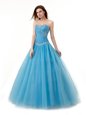Home >  Quinceanera Dresses >  Custom Made Quinceanera Dresses > Baby Blue A-line Tulle Sweetheart Sleeveless Beading and Ruching Floor Length Lace Up Quinceanera Dresses