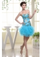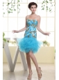 Baby Blue Appliques and Ruffles For Prom Dress With Mini-length