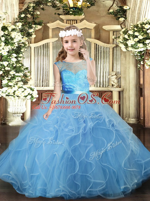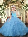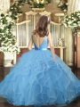 Baby Blue Backless Little Girls Pageant Dress Ruffles Sleeveless Floor Length