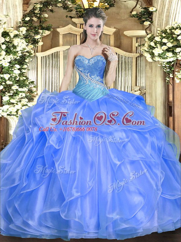 Home >  Quinceanera Dresses >  Quinceanera Dresses 2018 > Baby Blue Ball Gowns Organza Sweetheart Sleeveless Beading and Ruffles Floor Length Lace Up Vestidos de Quinceanera