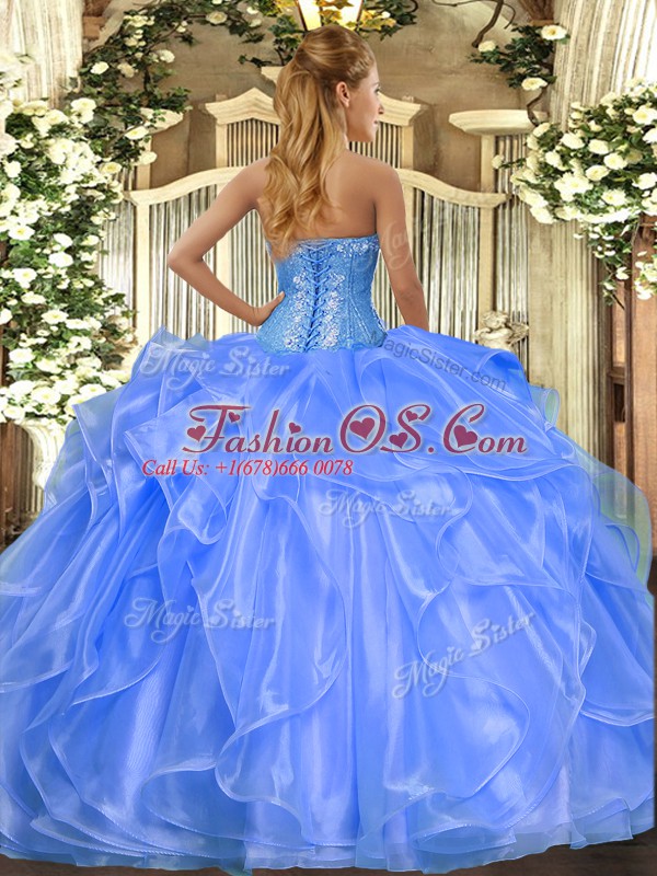 Baby Blue Ball Gowns Organza Sweetheart Sleeveless Beading and Ruffles Floor Length Lace Up Vestidos de Quinceanera