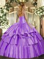 Baby Blue Ball Gowns Sweetheart Sleeveless Organza and Taffeta Floor Length Lace Up Beading and Ruffled Layers 15 Quinceanera Dress