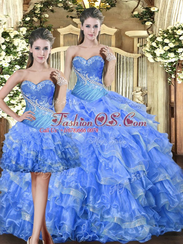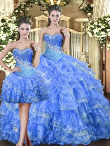 Home >  Quinceanera Dresses >  Detachable Quinceanera Skirts > Baby Blue Ball Gowns Sweetheart Sleeveless Tulle Floor Length Lace Up Beading and Ruffles Sweet 16 Quinceanera Dress