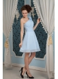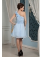 Baby Blue Bridesmaid Dress Under 100 A-line / Princess One Shoulder Chiffon Hand Made Flowers