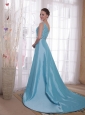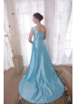 Baby Blue Column / Sheath One Shoulder Watteau Train Beading Taffeta Prom / Pageant Dress