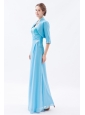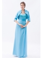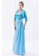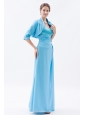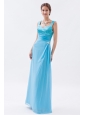 Baby Blue Column Straps Chiffon Prom Dress Beading Floor-length