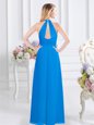 Baby Blue Empire Chiffon Halter Top Sleeveless Ruching Floor Length Zipper Wedding Guest Dresses