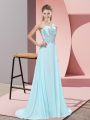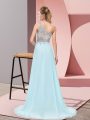 Baby Blue Empire Chiffon One Shoulder Sleeveless Beading Side Zipper Prom Evening Gown Sweep Train