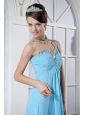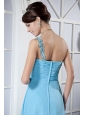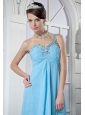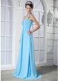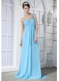 Home >  Prom Dresses >  Cheap Prom Dresses > Baby Blue Empire One Shoulder Brush Train Elastic Woven Satin Beading Prom Dress