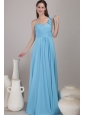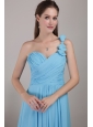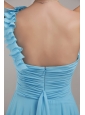 Baby Blue Empire One Shoulder Floor-length Chiffon Ruched Bridesmaid Dress