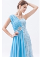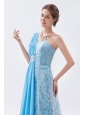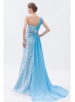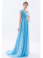 Home >  Prom Dresses >  Best Prom Dresses > Baby Blue Empire One Shoulder Prom Dress Chiffon and Lace Beading Brush Train