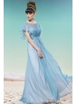 Baby Blue Empire Scoop Floor-length Chiffon Sequins Prom / Party Dress