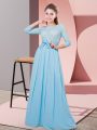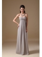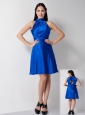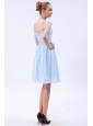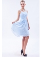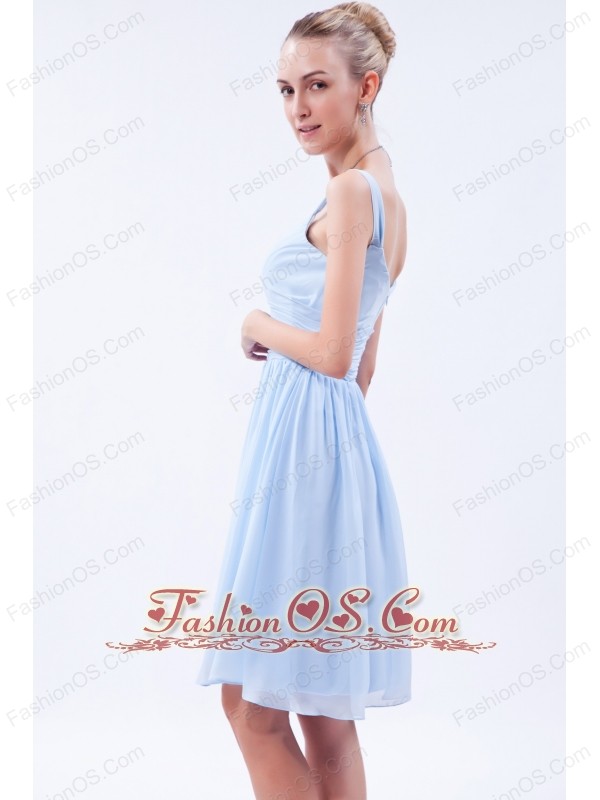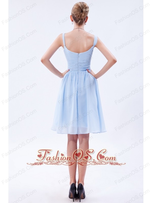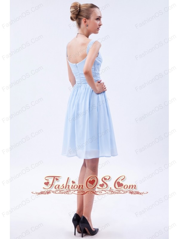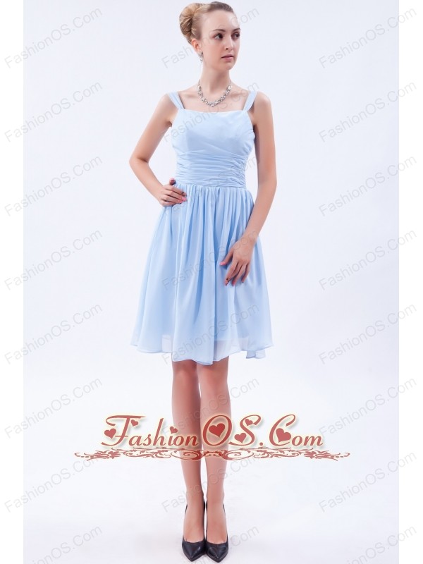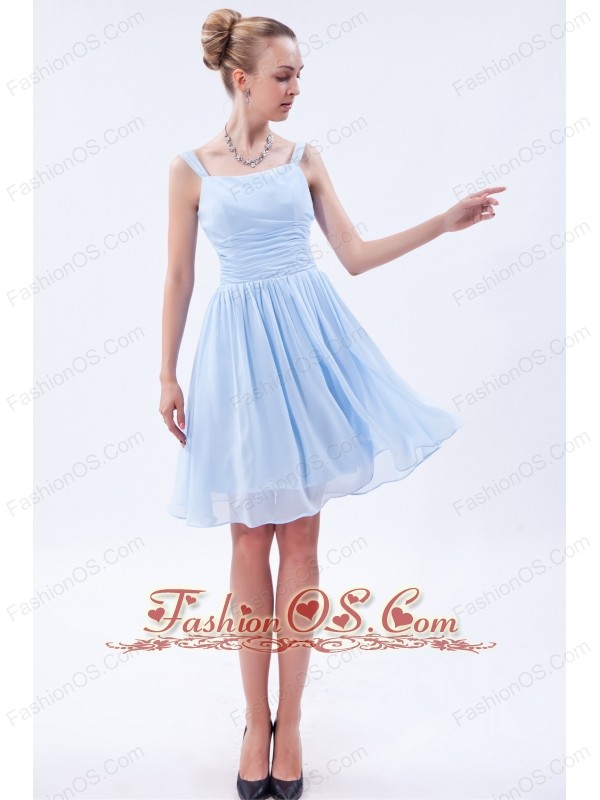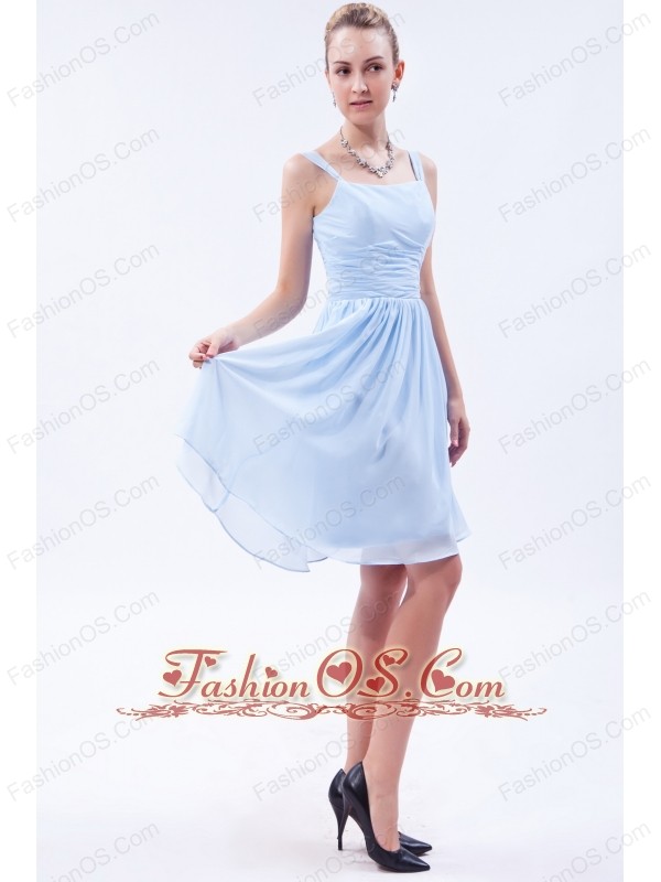 Baby Blue Empire Straps Knee-length Chiffon Ruch Bridesmaid Dress
