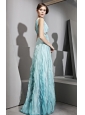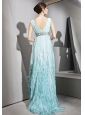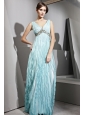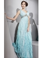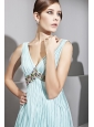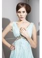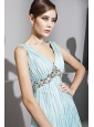 Baby Blue Empire V-neck Floor-length Chiffon Rhinestones Prom Dress