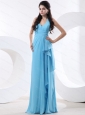 The baby blue color feature grace yet lovely feeling. Halter neckline shows your figure. A delicate ruches accents the midsection from where extending a soft layer of fabric, and the classic floor length skirt pours from the waist like a waterfall. Everything of this dress shows your elegance.