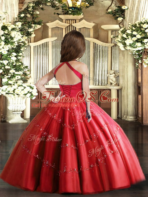 Baby Blue Lace Up Girls Pageant Dresses Beading Sleeveless Floor Length