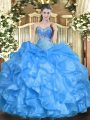 Baby Blue Lace Up Sweet 16 Dresses Beading and Ruffles Sleeveless Floor Length