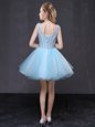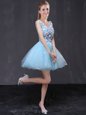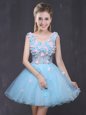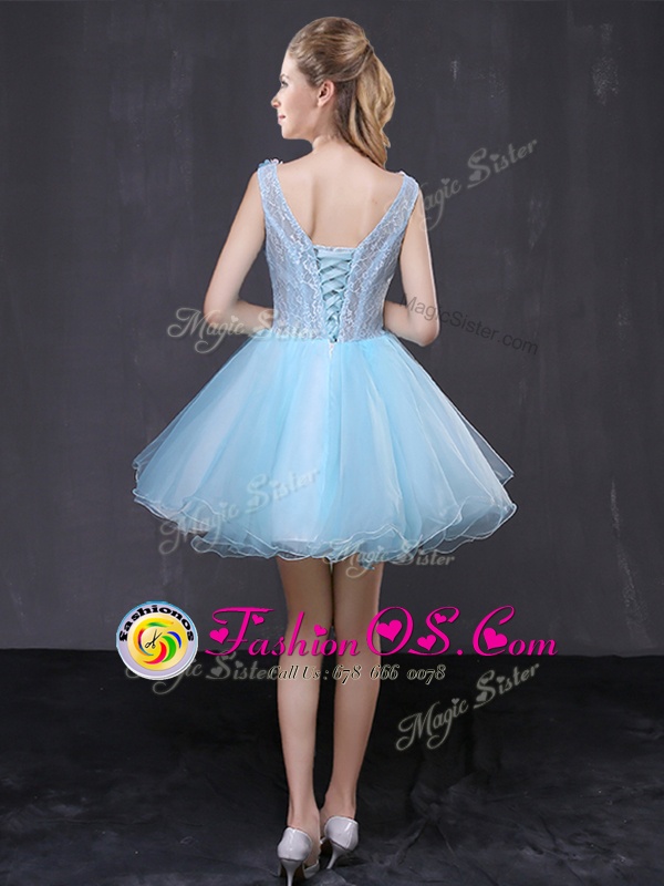 Home >  Prom Dresses >  Perfect Prom Dresses > Baby Blue Lace Up V-neck Hand Made Flower Prom Dresses Organza Sleeveless