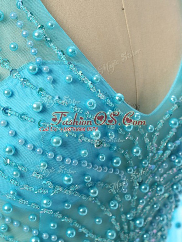 Home >  Special Occasion Dresses >  Elegant Mother of the Bride Dresses > Baby Blue Mother Of The Bride Dress Prom and Sweet 16 with Beading V-neck Long Sleeves Brush Train Zipper