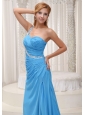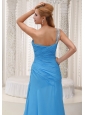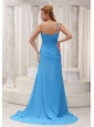 Baby Blue One Shoulder Prom / Evening Dress For 2013 Brush Train Chiffon Beading