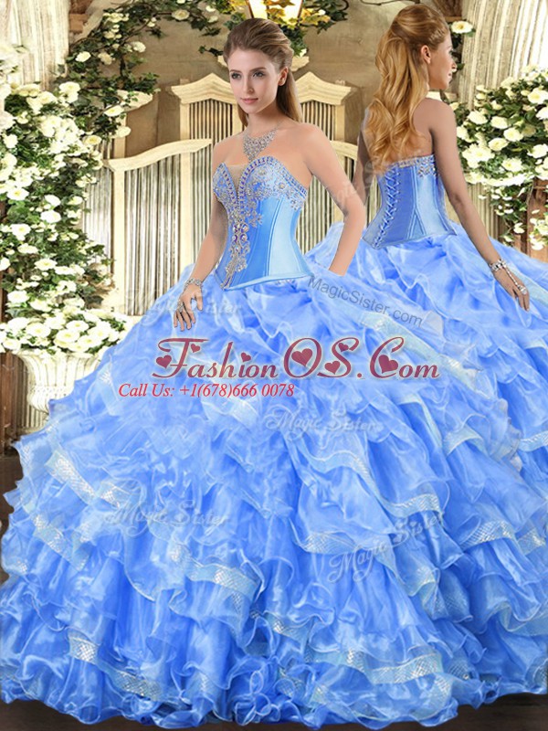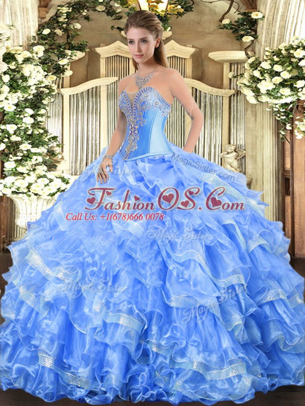 Home >  Quinceanera Dresses >  In Stock Quinceanera Dresses > Baby Blue Organza Lace Up Quinceanera Gown Sleeveless Floor Length Beading and Ruffled Layers