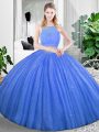Home >  Quinceanera Dresses >  Quinceanera Dresses 2018 > Baby Blue Organza Zipper Ball Gown Prom Dress Sleeveless Floor Length Lace and Ruching
