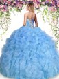 Baby Blue Quince Ball Gowns Military Ball and Sweet 16 and Quinceanera and For with Beading and Ruffles Sweetheart Sleeveless Lace Up