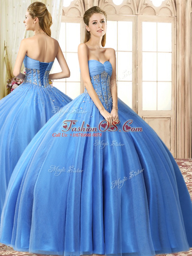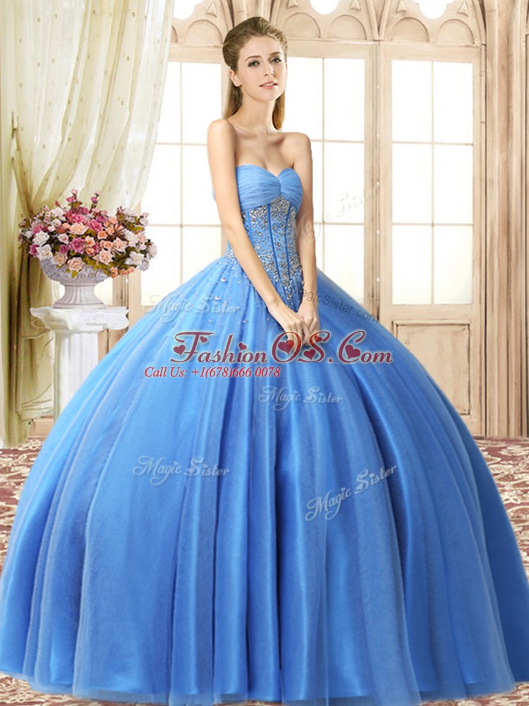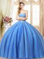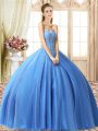 Baby Blue Sleeveless Beading Floor Length 15 Quinceanera Dress