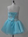 Baby Blue Sleeveless Organza Lace Up Teens Party Dress for Prom and Party