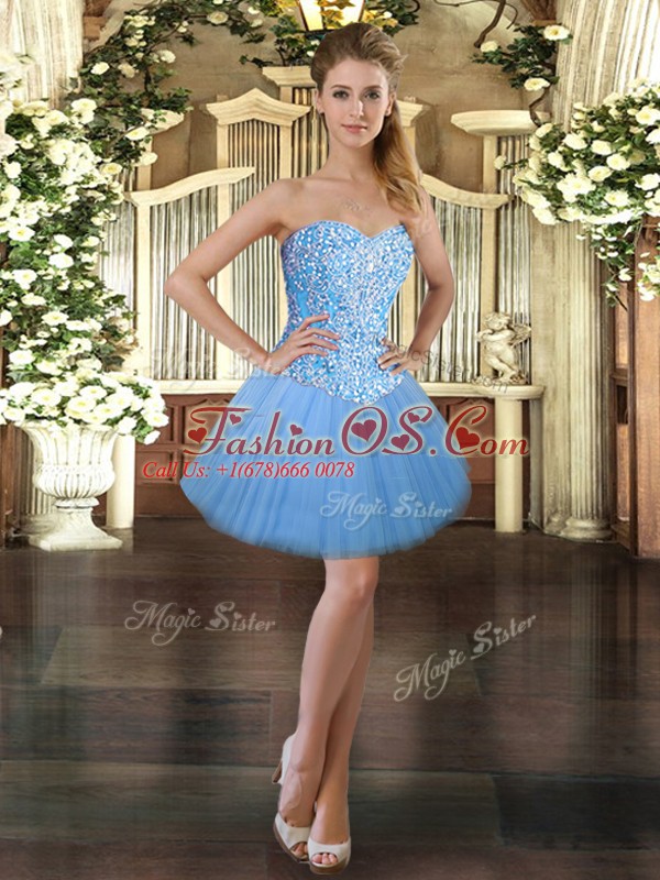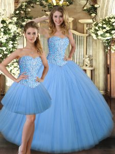Baby Blue Tulle Lace Up Sweetheart Sleeveless Floor Length Quinceanera Dress Beading
