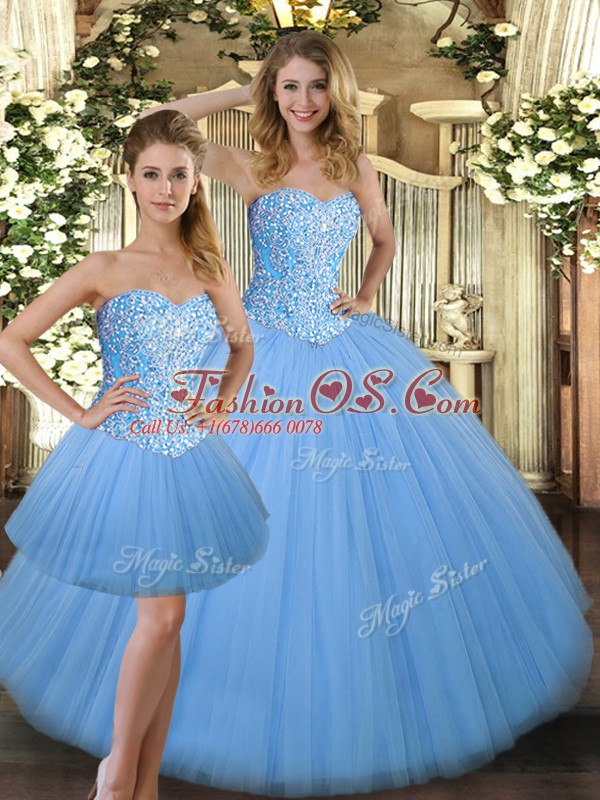 Home >  Quinceanera Dresses >  Detachable Quinceanera Skirts > Baby Blue Tulle Lace Up Sweetheart Sleeveless Floor Length Quinceanera Dress Beading