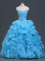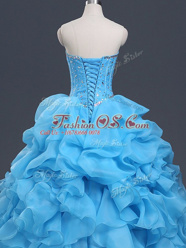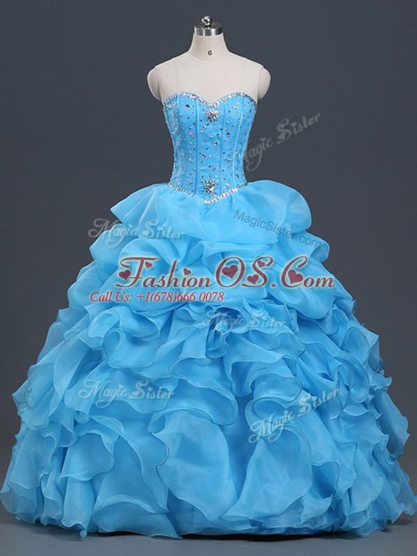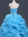 Baby Blue Vestidos de Quinceanera Military Ball and Sweet 16 and Quinceanera with Beading and Ruffles and Pick Ups Sweetheart Sleeveless Lace Up