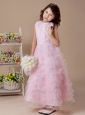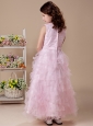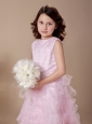 Baby Pink A-Line Ruffles High Nack 2013 New Arrival Custom Made Flower Girl Dress