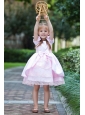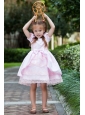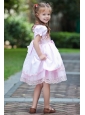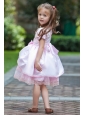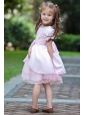 Home >  Flower Girl Dresses > Baby Pink A-line Scoop Flower Girl Dress Taffeta and Lace Bow Tea-length