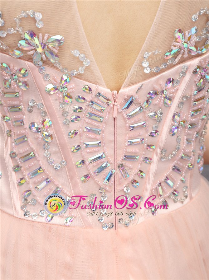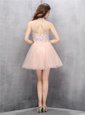 Home >  Prom Dresses >  Perfect Prom Dresses > Baby Pink A-line Tulle High-neck Sleeveless Beading and Sequins Mini Length Zipper Prom Dresses