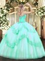 Baby Pink Ball Gowns Beading and Appliques Quinceanera Gown Lace Up Tulle Sleeveless
