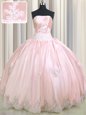 Home >  Quinceanera Dresses >  15 Quinceanera Dresses > Baby Pink Ball Gowns Strapless Sleeveless Taffeta Floor Length Lace Up Beading and Appliques 15 Quinceanera Dress