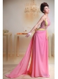 Home >  Special Occasion Dresses >  Celebrity Dresses > Baby Pink Beaded Chiffon Prom Dress With Watteau Train