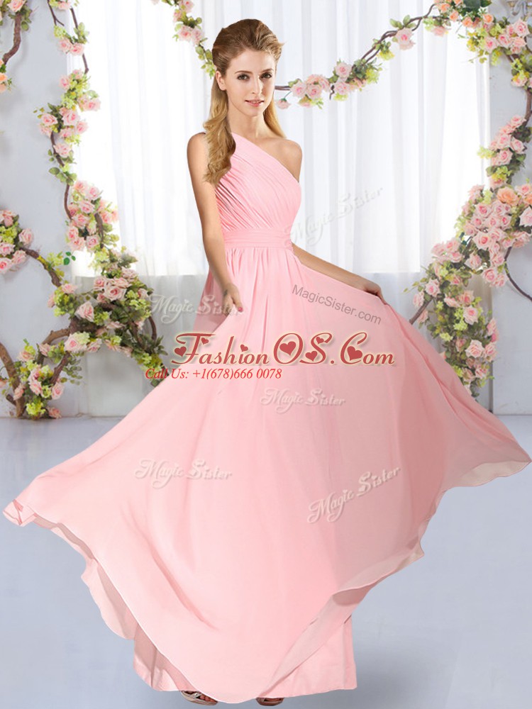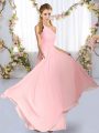 Baby Pink Chiffon Lace Up Quinceanera Court Dresses Sleeveless Floor Length Ruching