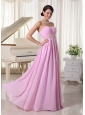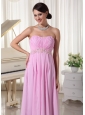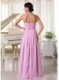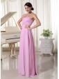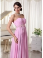 Baby Pink Chiffon Ruched Sweetheart Prom Dress With Appliques Decorate Waist
