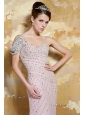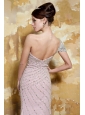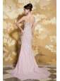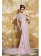 Baby Pink Column One Shoulder Court Train Chiffon Beading Prom / Evening Dress