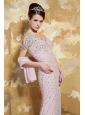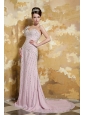 Home >  Prom Dresses >  Cheap Prom Dresses > Baby Pink Column One Shoulder Court Train Chiffon Beading Prom / Evening Dress