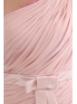 Home >  Prom Dresses >  Short Prom Dresses > Baby Pink Column One Shoulder Short Prom Dress Chiffon and Sequin Bow Mini-length