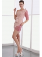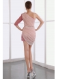 Baby Pink Column One Shoulder Short Prom Dress Chiffon and Sequin Bow Mini-length