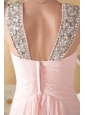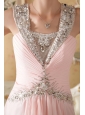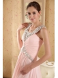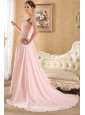 Home >  Prom Dresses >  Cheap Prom Dresses > Baby Pink Column / Sheath Straps Court Train Chiffon Beading and Ruch Prom / Evening Dress