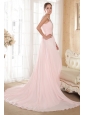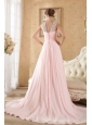 Baby Pink Column / Sheath Straps Court Train Chiffon Beading and Ruch Prom / Evening Dress
