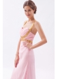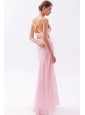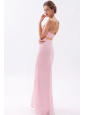 Baby Pink Column / Sheath Straps Prom Dress Chiffon Sequins Floor-length