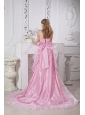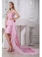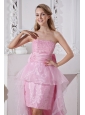 Home >  Prom Dresses >  High Low Prom Dresses > Baby Pink Column Strapless Prom / Homecoming Dress High-low Taffeta and Organza Beading